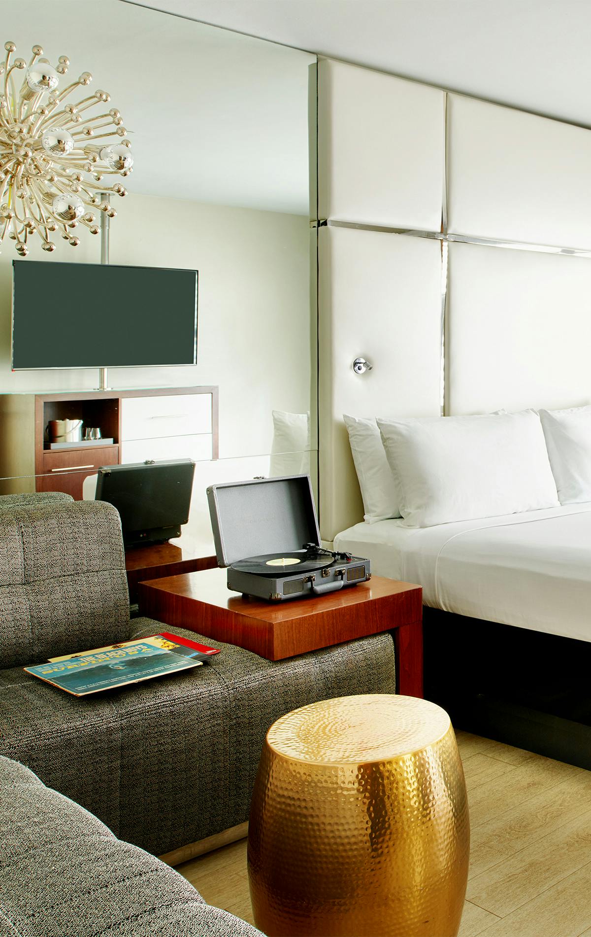 Experience the sophisticated style of our multi-level Deluxe Suites, each boasting approximately 425 square feet of luxurious space. Featuring a plush king-size bed, a cozy fireplace, and a step-down living area with a sofa bed, this suite is perfect for relaxation. Enjoy modern conveniences like a 65” HDTV with premium channels, complimentary high-speed internet, and luxury bath amenities from MALIN+GOETZ. Accommodating up to four guests, this suite ensures a memorable and indulgent stay.