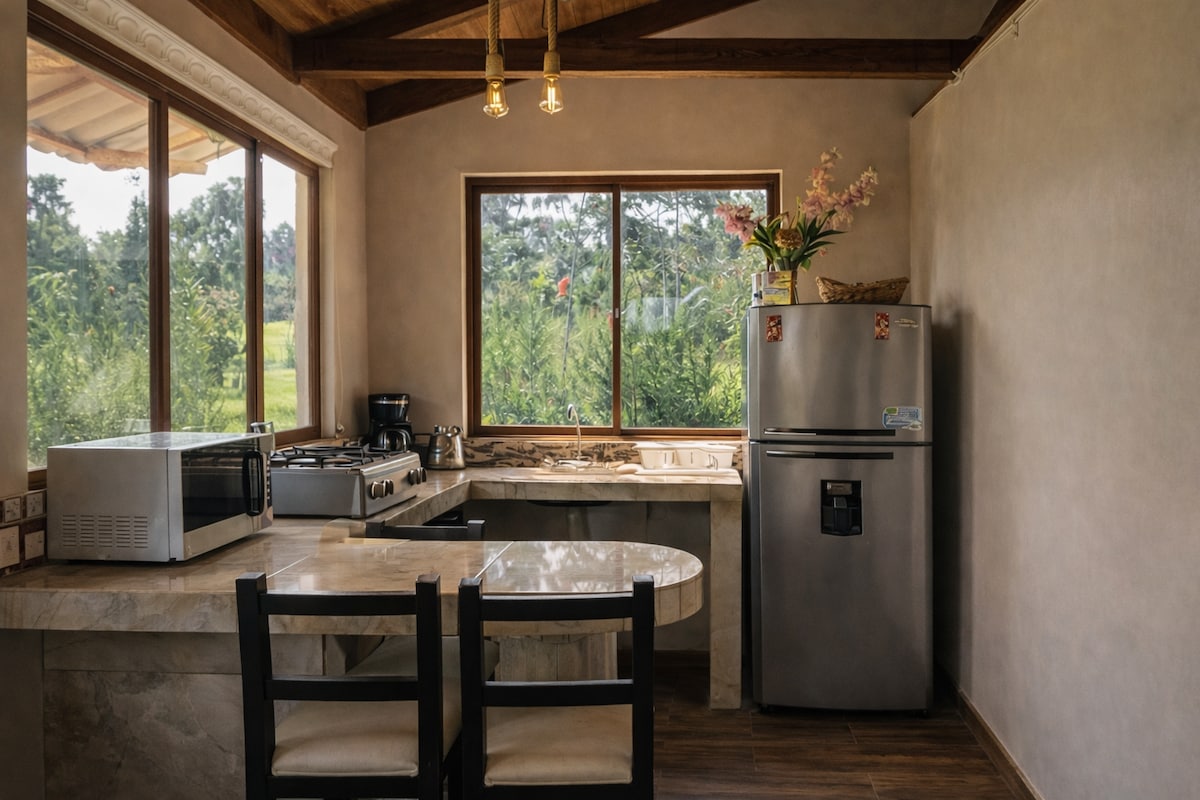 Welcome to your retreat in Cotacachi! Enjoy an unforgettable stay in our cozy apartment with stunning views of the majestic Imbabura volcano and its lush valleys. Wake up to dreamlike landscapes and experience the serenity of nature. Ideal for those seeking tranquility and a connection with the environment. Equipped with all the amenities, this space is perfect for relaxing and exploring the beauty of Cotacachi. Your adventure awaits!