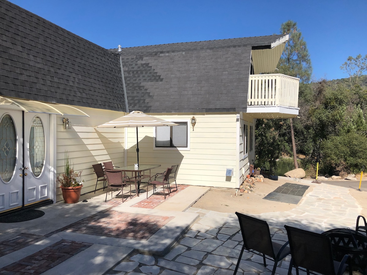 Very Spacious, loft retreat near Yosemite and in the peaceful pines. Private 800 square foot with comfy king size, full kitchen, large full bath, heating and air conditioning, wood burning fire , relaxing balcony. We host 2 adults. Perfect for a couple. Lots of wild life on our property.