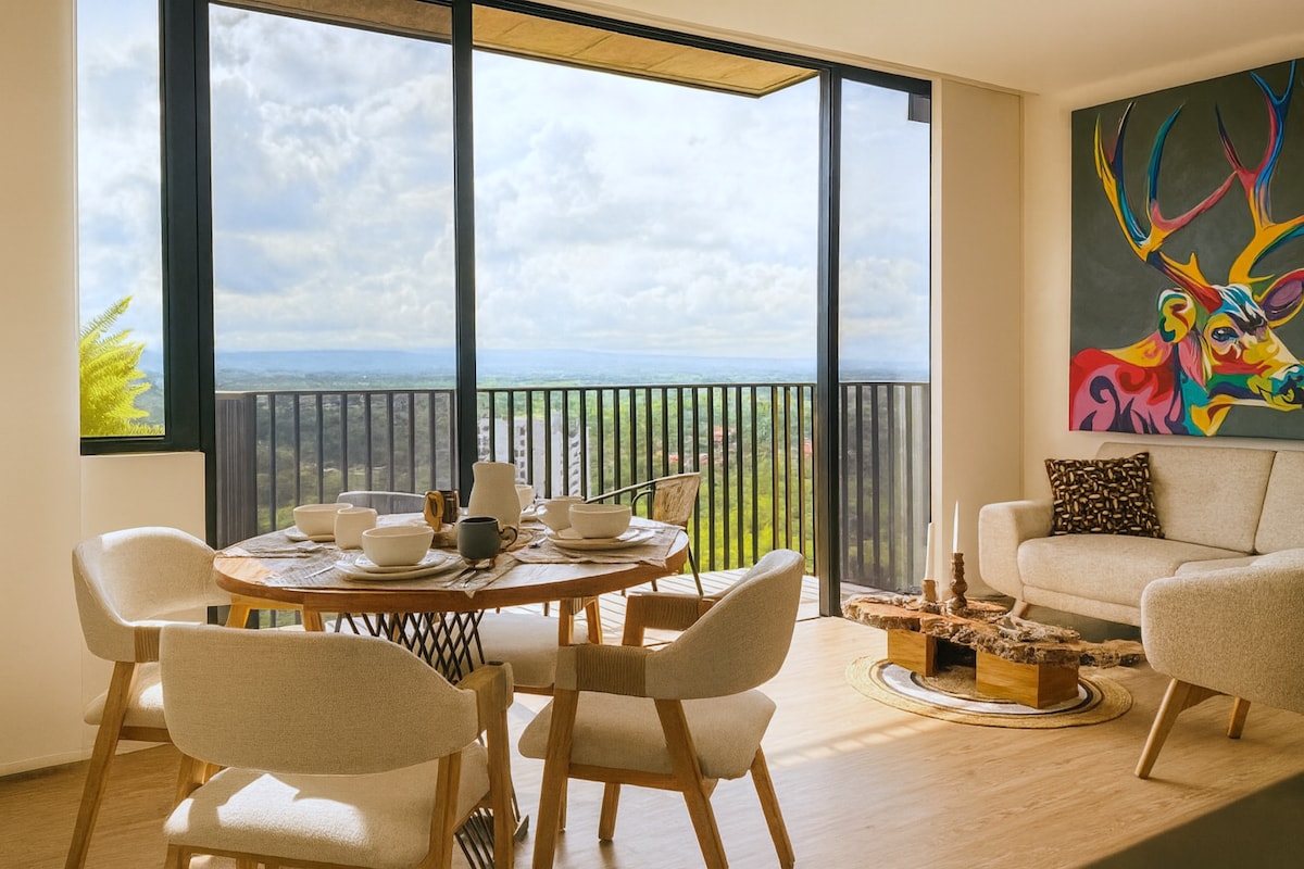 Sitio mágico con una vista hermosa de la ciudad; esta es una oportunidad para hospedarse en las montañas del eje cafetero sin sacrificar comodidad, de iniciar el día con aire limpio y la vista de un hermoso amanecer, y si tiene la fortuna encontrará una noche llena de estrellas, con las luces de la ciudad a sus pies, una experiencia inolvidable