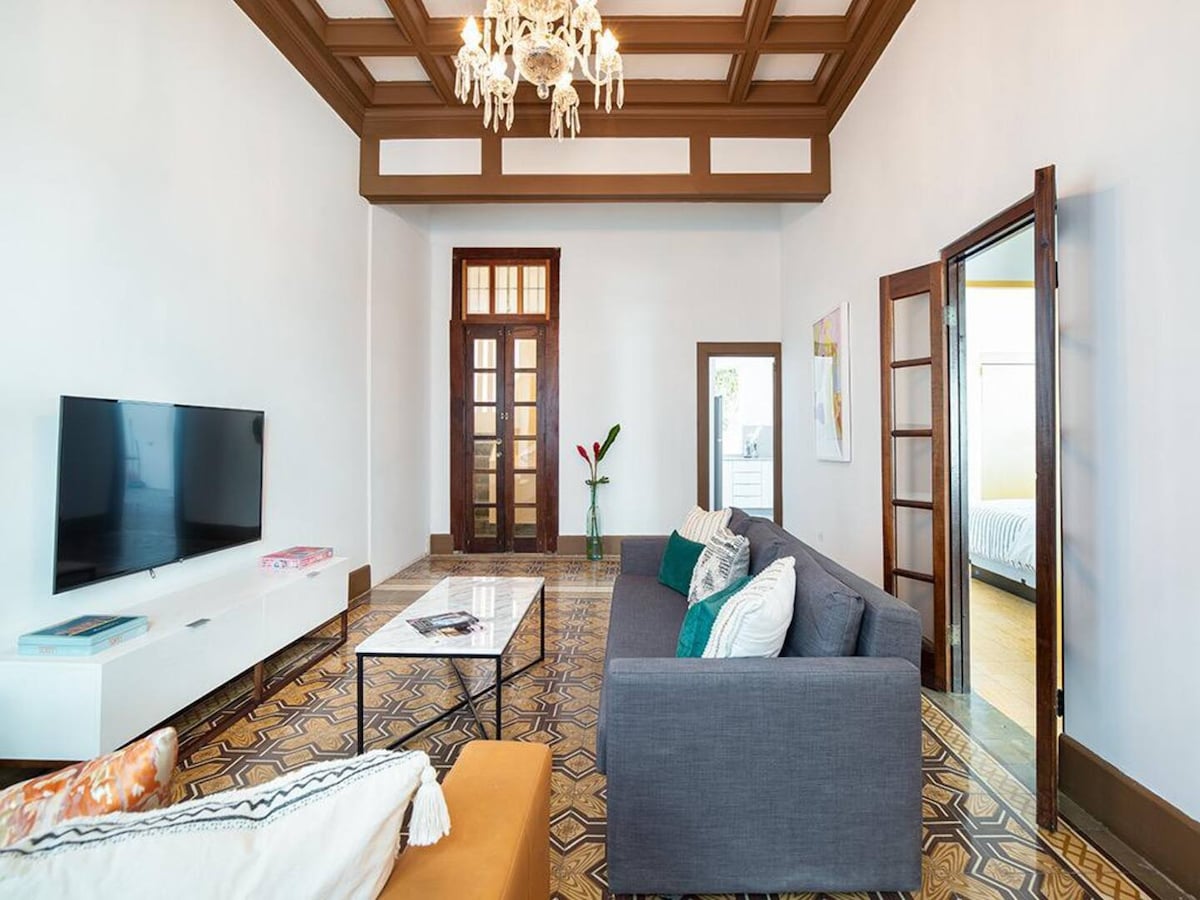 Art Deco apt: 5 bedrooms, 3 restrooms, big living room, full kitchen, laundry with new washer & dryer, balcony and private garage with roof for your car. It’s an exclusive and privileged location with a lot of space to be relax. Condado, the beach, great nightlife, groceries, theaters, cinemas, bars, restaurants, stores, gyms, bus stop and more are at walking distance. FULL BACKUP GENERATOR. other apartment in the same building https://www.airbnb.com/slink/k10bkqnR https://abnb.me/dY5mMqiNLR