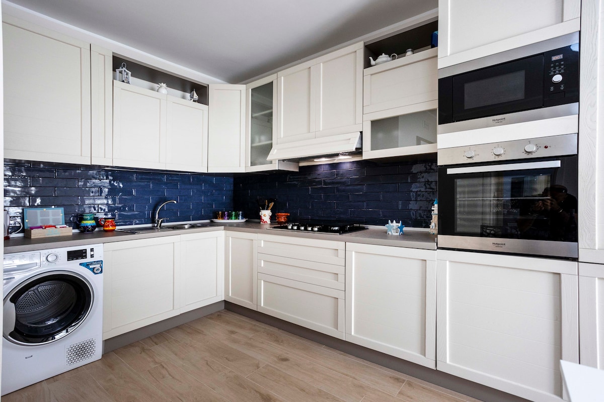 Apartment description. The apartment is 100 meters from the public beach with a restaurant. The apartment has 2 double bedrooms - equipped with linens and towels Kitchen/Living Room: 1. Dishwasher, 2. Lavazza coffee machine 3. Satellite TV 2 bathrooms: 1 bathroom with shower and 1 bathroom with bathtub. Each room includes a TV Gas BBQ Washer Hair dryer 1 parking space - reserved inside the building, closed with an electric gate.
