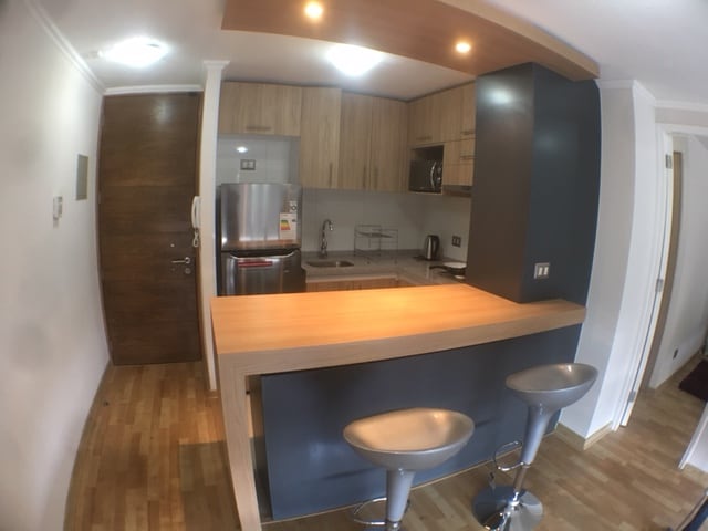 Bright and comfortable fully furnished apartment in downtown Copiapó. From here you can see the valley. At the same time, surrounded by shopping centers (bank, supermarket, pharmacies, service station and others). Which do not disturb the tranquility, being a very cozy space, due to the shelter of the sun, location and utensils offered. Transportation in the same block. It has parking inside the building, 24-hour concierge, elevator, access to the swimming pool, and a gazebo.