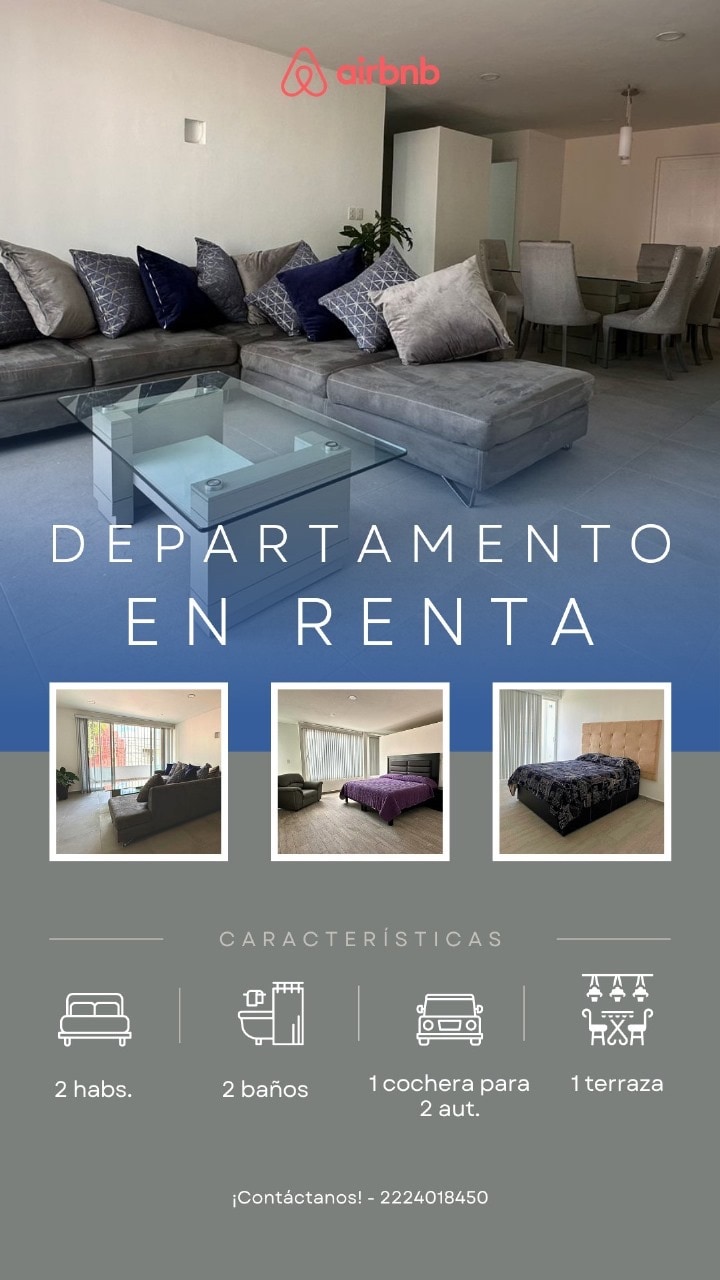 Espectacular departamento (Se factura si lo requiere), llegada autónoma, se ubica dentro de fraccionamiento en zona residencial muy segura, excelente para conocer las maravillas de Cholula (Ciudad donde hay 283 parroquias) - Disfruta de paseo a pie o en bicicleta de montaña en la reserva natural de Cholula “cerro zapotecas” a 3 min. - A 5 min de la Zona Arqueológica de Cholula - Campo de Golf a 3 min. - Preguntar por convivencia y actividades con Caballos
