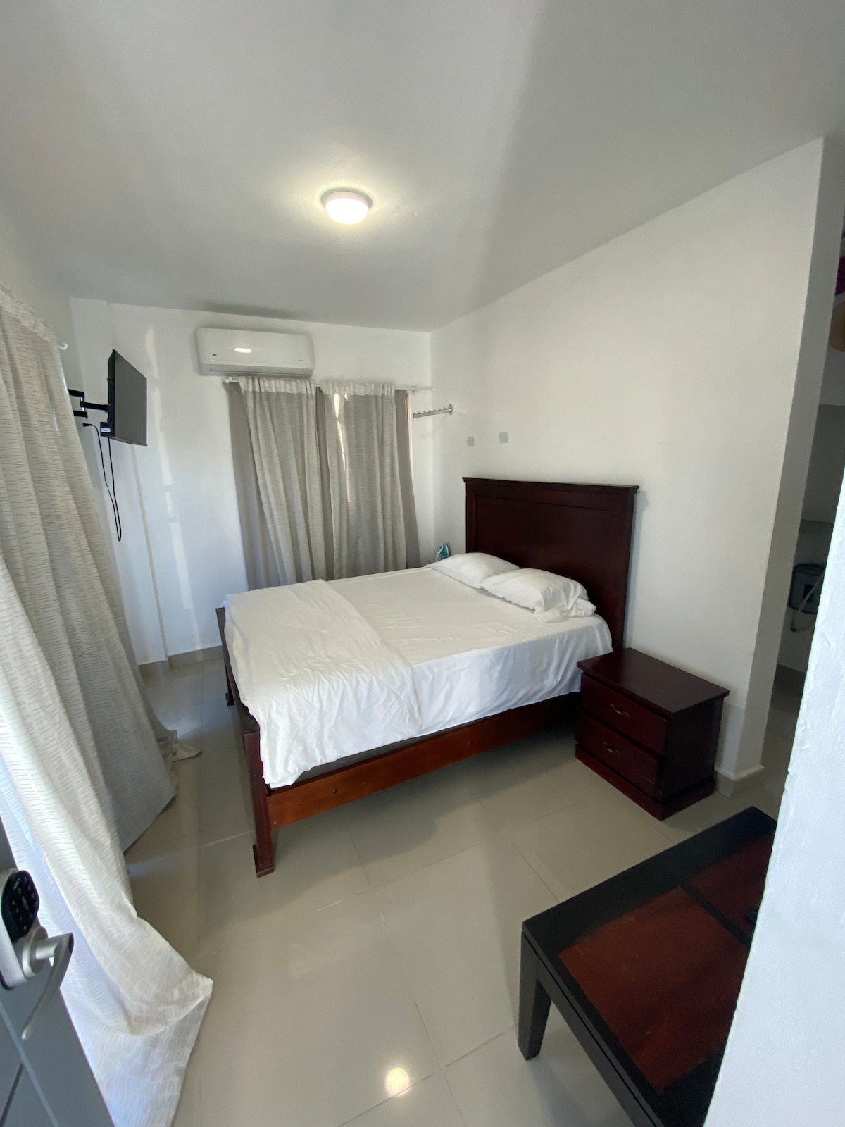 Experience a modern and centrally-located space, just two blocks from the Tetelo Vargas Stadium and local supermarkets, and 15 minutes from the beautiful beaches of Juan Dolio. The apartment offers air conditioning in both the living room and the bedroom, which has a comfortable king size bed, while the living room has a full sofa bed. In addition, you will enjoy Wi-Fi, a fully equipped kitchen and a laundry area, designed to make your stay comfortable and unforgettable.