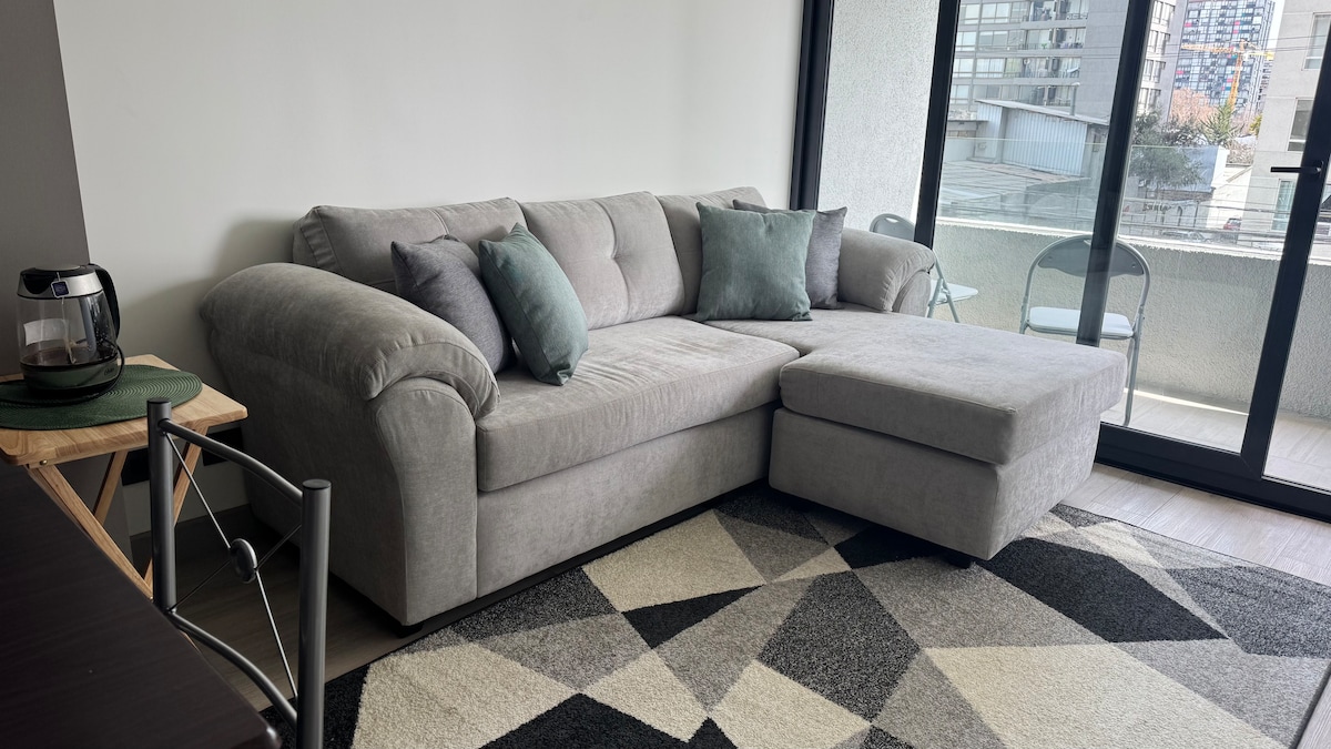 Cozy and bright apartment with balcony, equipped with a queen bed and a futon for a third guest. Full Equiped Kitchen Wi-Fi 500 Mbps Smart TV Free luggage storage Pet-friendly Just 3 minutes from the Departmental Metro, supermarkets, restaurants and cafes are within walking distance. Central highway just 5 minutes away. Enjoy a gym, barbecue areas, and self-service laundry in a safe residential building with 24/7 concierge. Great for couples and long stays. Book and experience Santiago as if you were at home!