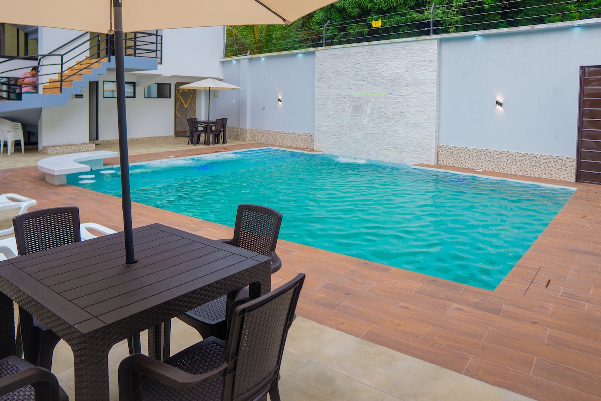 A centrally-located vacation home, close to the city's main waterfalls, where you'll find all the comforts you need to spend an excellent vacation. The interior furniture will make you feel at home, in the gardens and pool you can enjoy an afternoon full of grills or a night of campfire, without forgetting the playground for adults and children. Let yourself be enveloped by the comfort of Natura Wasi and experience exceptional days with your family and friends.