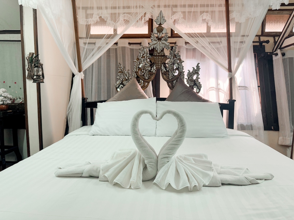 Beautifully constructed from local teakwood, this architect designed hotel brings you all the charm of the Lanna Kingdom. With only 12 large rooms built around a tranquil swimming pool, this is a relaxed place to base yourself during your stay in Chiang Mai. With easy undercover parking, you can be in the centre of Chiang Mai in 10 minutes or on the highway to the mountains in 5 minutes. Only 700m up the road is Ruamchok Market offering amazing local food, plus shopping mall conveniences.