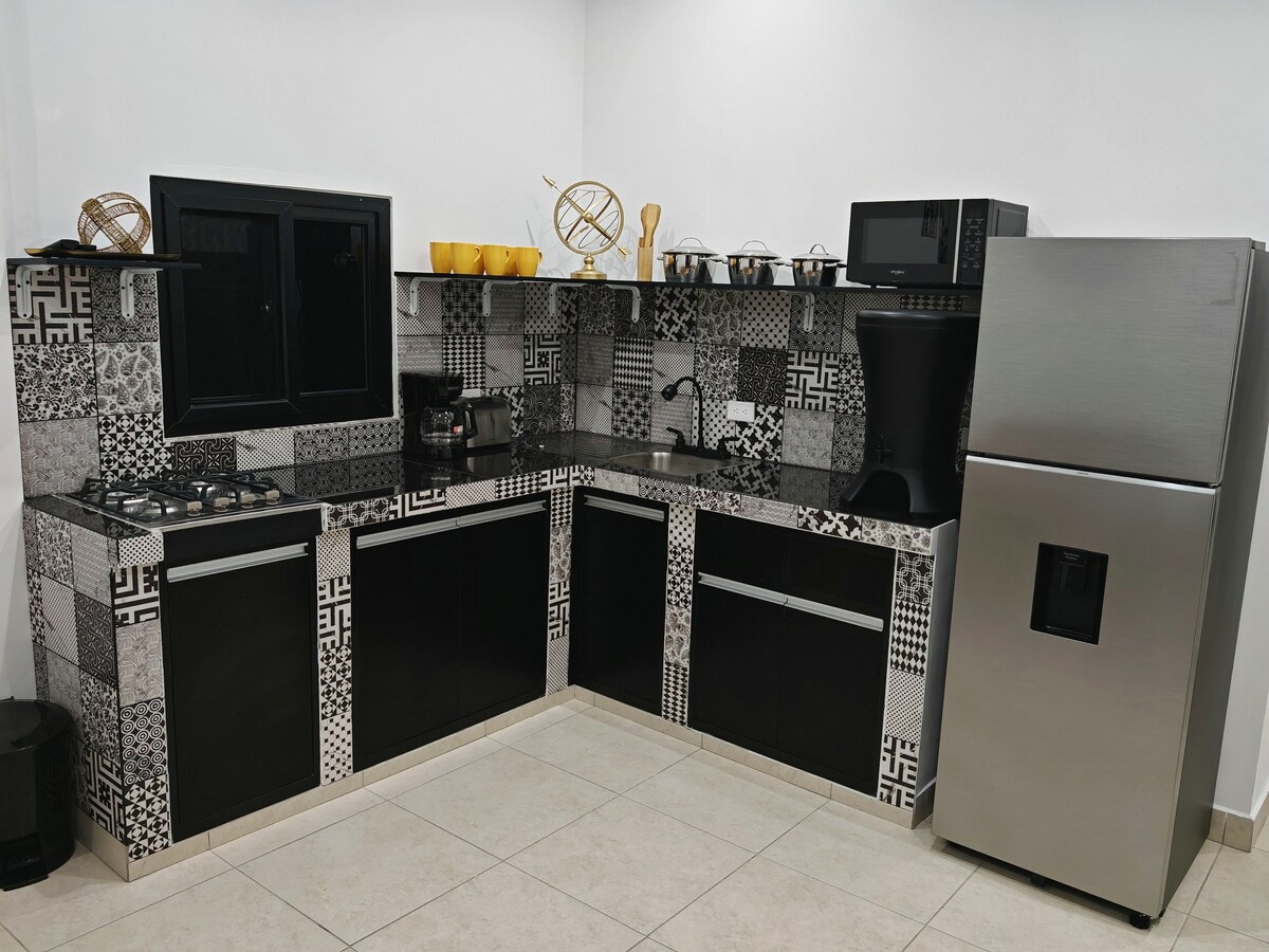 Enjoy a spectacular view of the volcanoes from your private balcony in this cozy, modern studio. It’s fully equipped with high-quality amenities, from a comfy queen-size bed to a handy sofa bed for extra guests. With a fully equipped kitchen, and black out curtains, you’ll have everything you need for a relaxed and fun stay. It includes one parking space, on-site gym and access to the building’s convenience store. Just 8 minutes from the airport is the perfect place for you and your beloved