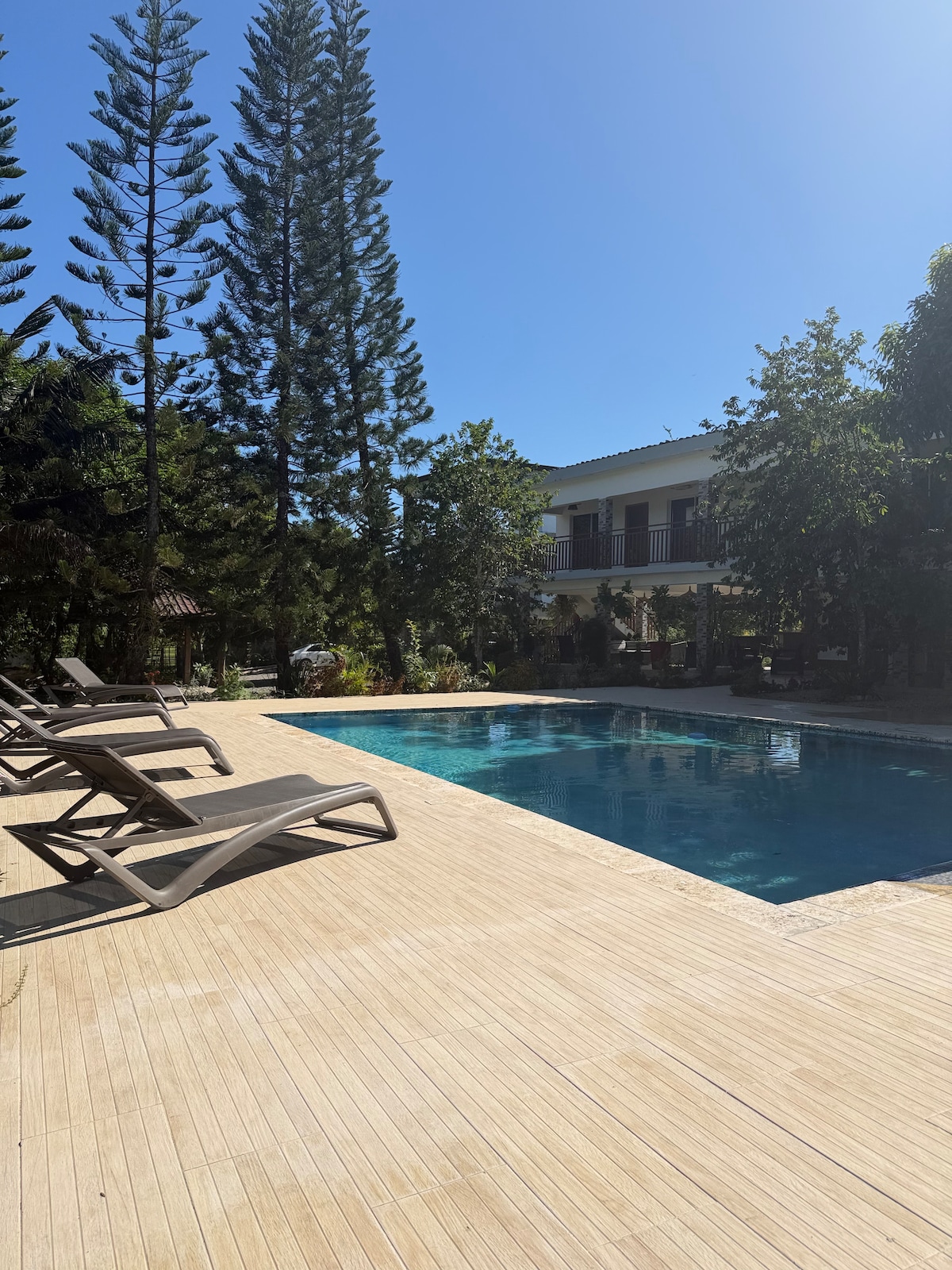 Forget your worries in this spacious and serene space located just 1 hour from Santo Domingo. Accessible in all types of vehicles. Fully private villa with 2 bedrooms with air conditioning, swimming pool, Jacuzzi and large gardens, volleyball court. Ideal for family and friends. Within a gated community, there is private access, a 2-minute walk to the Yuboa River. Walking trails. Note: the second level is an office and remains unavailable for rent