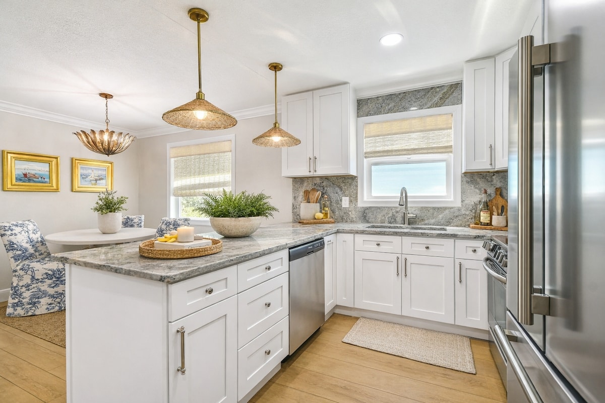 BTR#2114 This home has it ALL including incredible open water sunsets! Every detail has been carefully thought out and updated. This is a VERY upscale, coastal, single story waterfront home. A complete waterfront remodel w/ dock & pool that looks and feels like a new home w/ stunning water views from your own back patio! The water glistens and sparkles from 3 pm thru sunset and after, the sky is set on fire for 40 minutes. White sandy beach is only few blocks away! Amazing home inside & out!