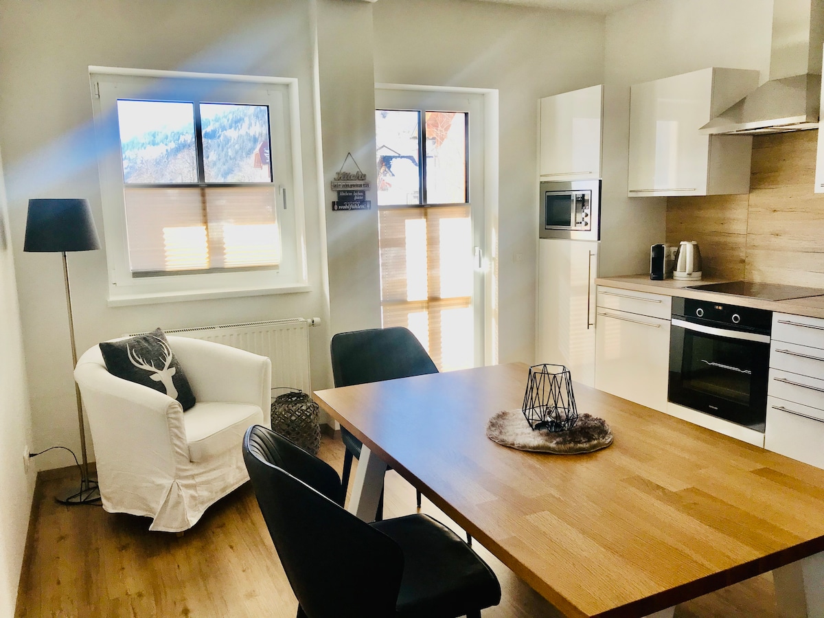 Our lovingly designed apartment awaits you on the edge of the old town of Murau. Perfect for couples or small families, our home offers all the advantages for an unforgettable stay. The 51m² living space offers room for up to 5 people - 1 bedroom with double bed + double sofa bed + single sofa bed. You can park directly next to the building in carport number 1 with a height of 1.80m. There are also other public parking spaces near the building.
