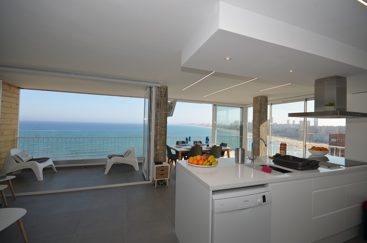 Beautiful beachfront apartment (direct exit to the sea) with unbeatable views of the Mediterranean. Ideal for couples and families with children. No parties and no noise allowed. Available for long stays. Contact us. Area connected by public transport: TRAM and buses to the city center. All services: Restaurants, Supermarkets, Pharmacy. It features a front terrace and stunning views of Santa Bárbara Castle; where you can relax watching the waves of the sea