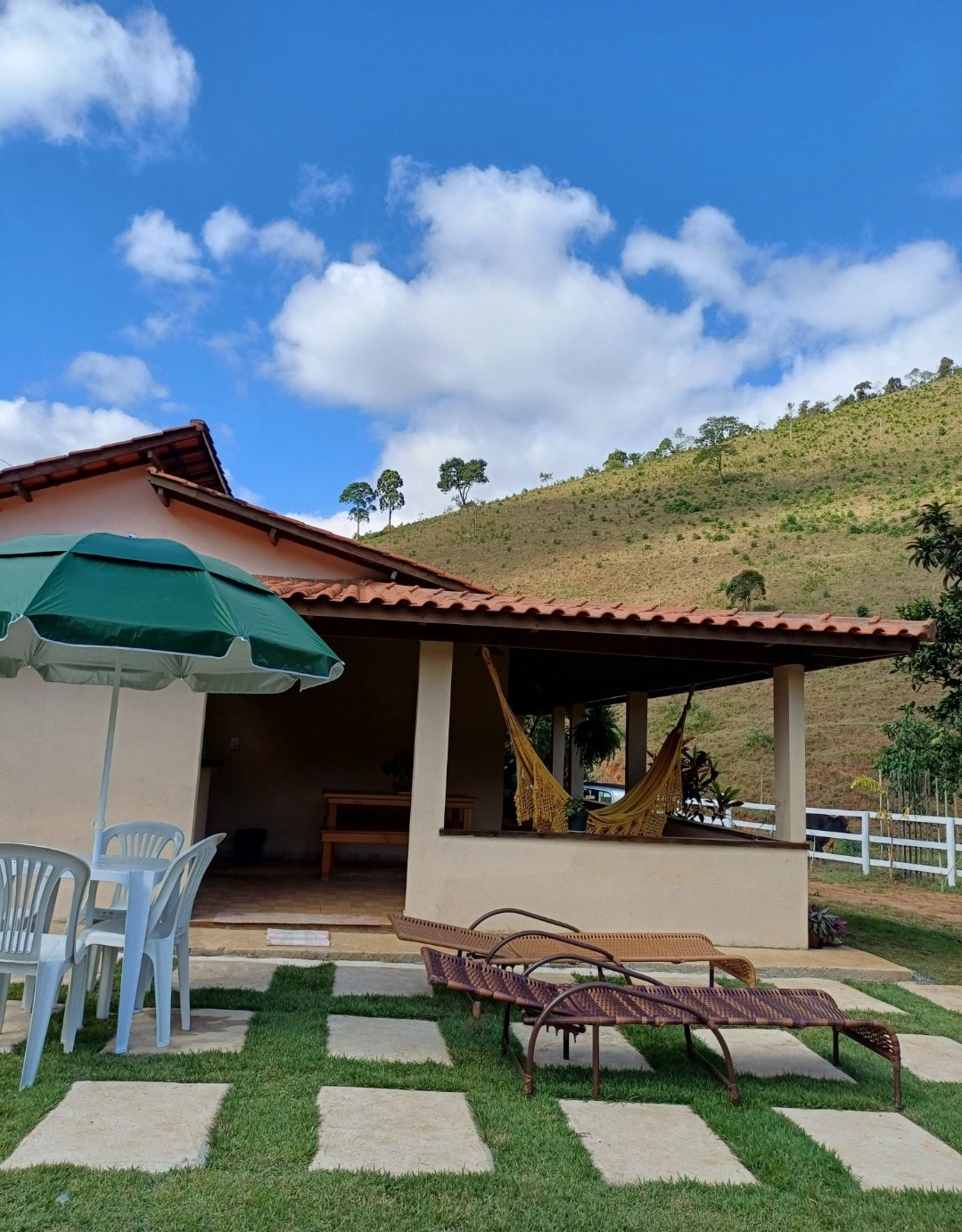 Our farm is very beautiful, ideal for resting, spending a quiet weekend, with family or a small group of friends. It has a futebol society field (beach tennis), ping pong, swimming pool, two balconies, barbecue area, pergola with hammocks. In the house, we have a bedroom/living room with an en-suite and fireplace, another en-suite with 1 double bed and 1 single bed, an external bathroom. Sleeps up to 8 people. The farm is ideal for hosting families, and small family celebrations during the day.
