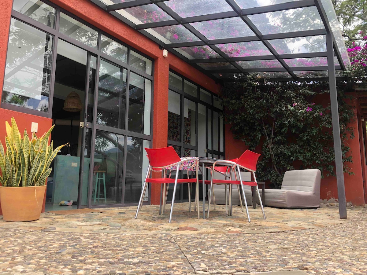 Experience the essence of Oaxaca. Adobe house with vibrant colors, large garden and fruit trees in a countryside environment full of calm, wake up with the birdsong, just 25 minutes from downtown, Pet friendly and perfect for exploring the mezcal route, crafts and markets of Tule 5 minutes away, Teotitlán 10 minutes, Tlacolula 15 minutes, Mitla and Matatlán. Enjoy aromas of traditional cuisine, starry skies and the rural charm that makes every visitor fall in love.