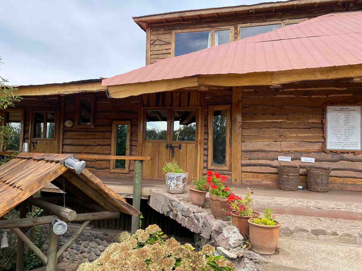 Refugio con Vista Panorámica al Valle Despierta cada mañana con una vista privilegiada del valle, rodeado de un entorno natural que invita al descanso y la desconexión. Lo que ofrecemos: Espacios cálidos y confortables para un descanso pleno. Jacuzzi al aire libre para disfrutar bajo las estrellas. Fogón perfecto para compartir historias o una copa de vino. Entorno natural que invita a caminar, respirar profundo y reconectar.