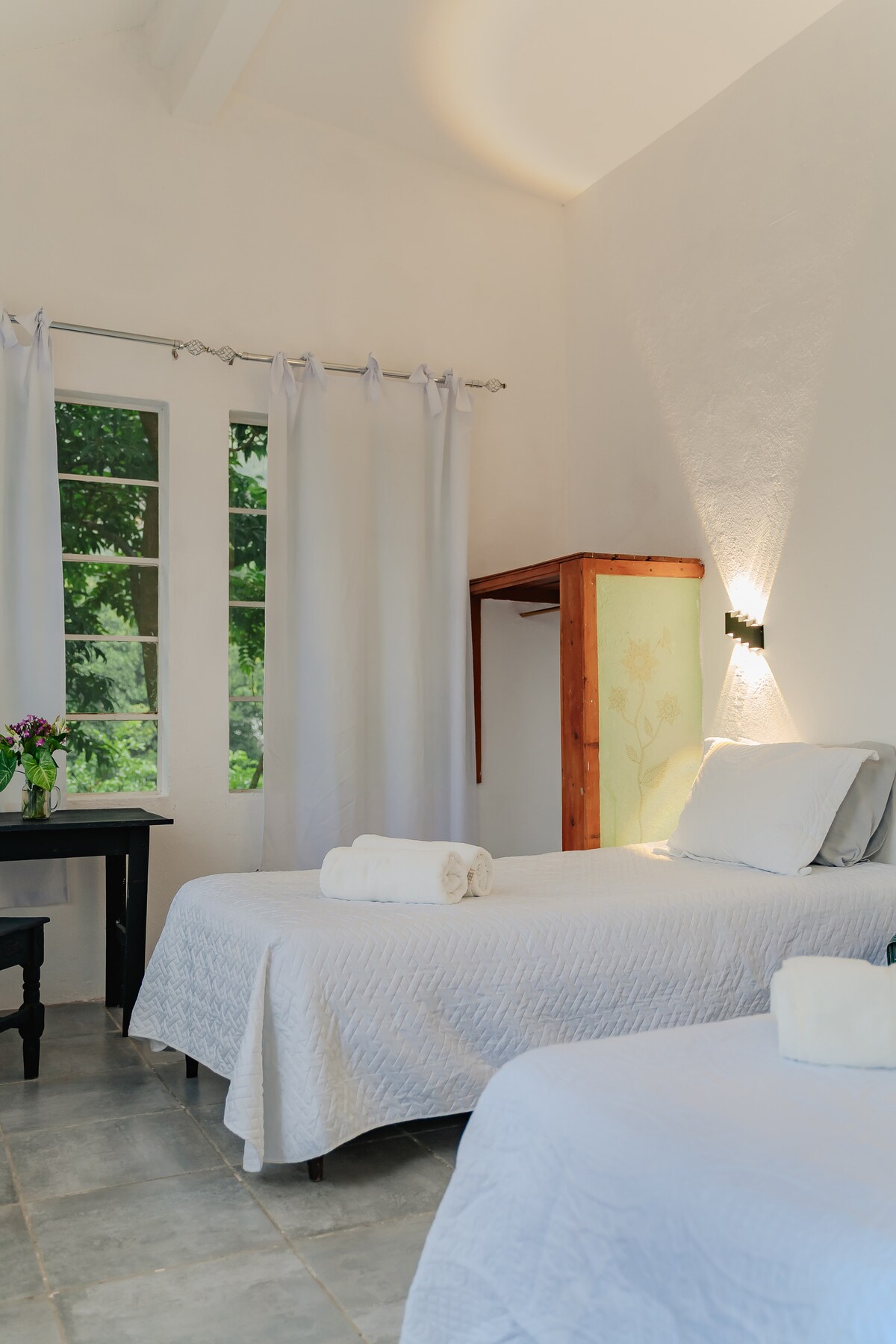 Villa Eggedal is situated on the North shore of Lake Atitlan in the peaceful village of Santa Cruz. Ten acres of beautifully manicured gardens with pool overlook the lake and its surrounding volcanoes. The gardens make this a bird-watcher's paradise. There are 7 properties on this amble estate. The views are amazing but it does involve walking up numerous steps. If you are arriving after dark, please make sure to bring a torch with you. Only arrive by boat and not by car.