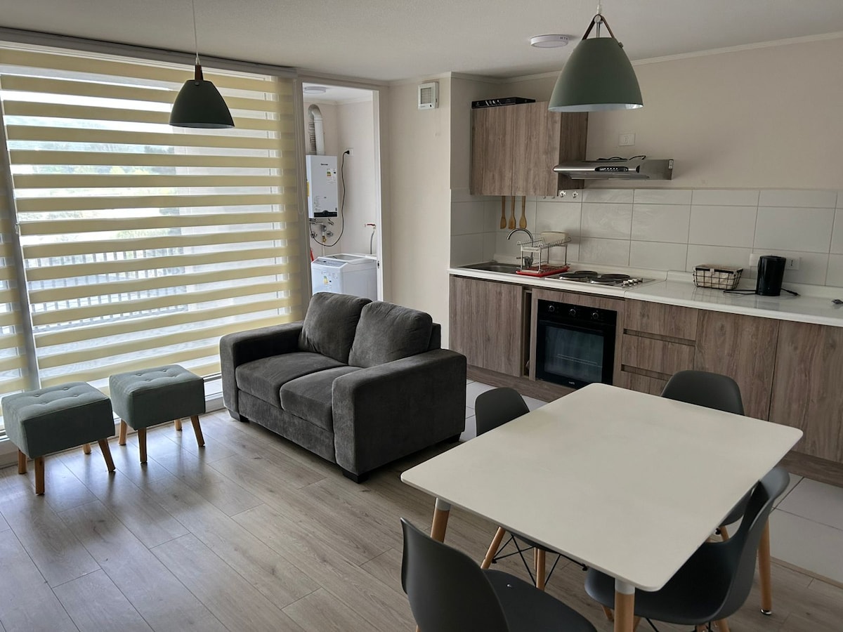 Modern and cozy fully equipped apartment, steps from Casino Dreams, Mall Portal Temuco and Av. Alemania. Furnished with premium quality: Rosen bed, Cannon pillows and towels, kitchen with countertop and electric oven, Ursus Trotter appliances, complete tableware and fast WiFi. Includes access to the gym. Perfect for enjoying Temuco in comfort and style.
