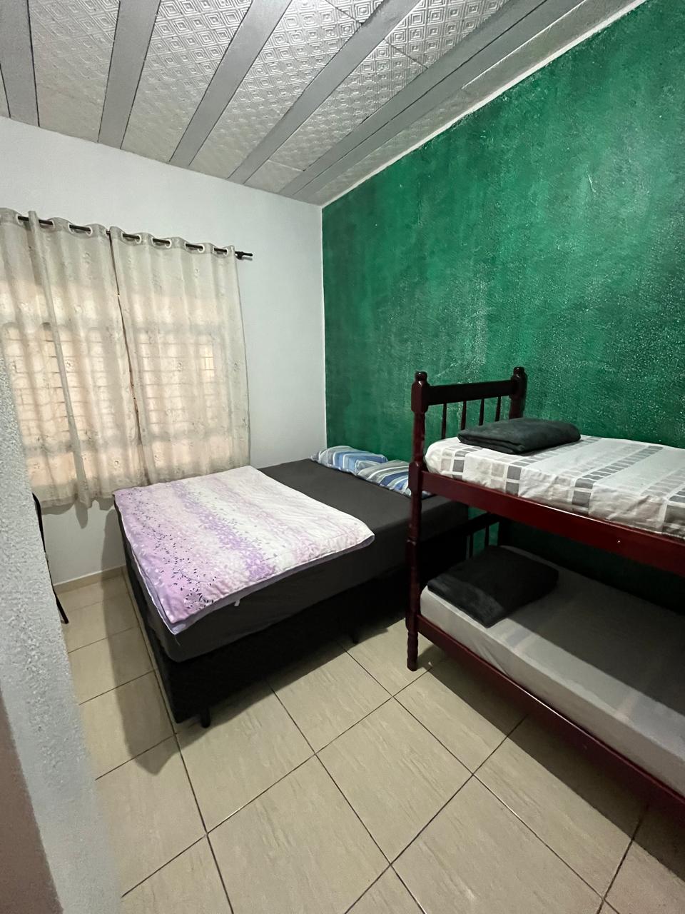 Casa com 3 quartos ( dois com cama de casal), Um com cama de casal mais beliche. Para um total de 8 pessoas. Um banheiro social. Sala com TV+sofa+wi-fi. Cozinha c/churrasqueira, geladeira, fogão e utensílios básicos. Estacionamento para dois carros. Sua família vai estar perto de tudo ao ficar neste lugar bem-localizado. Não é permitido animais de estimação. Necessário trazer os forros de cama, travesseiros e toalhas.