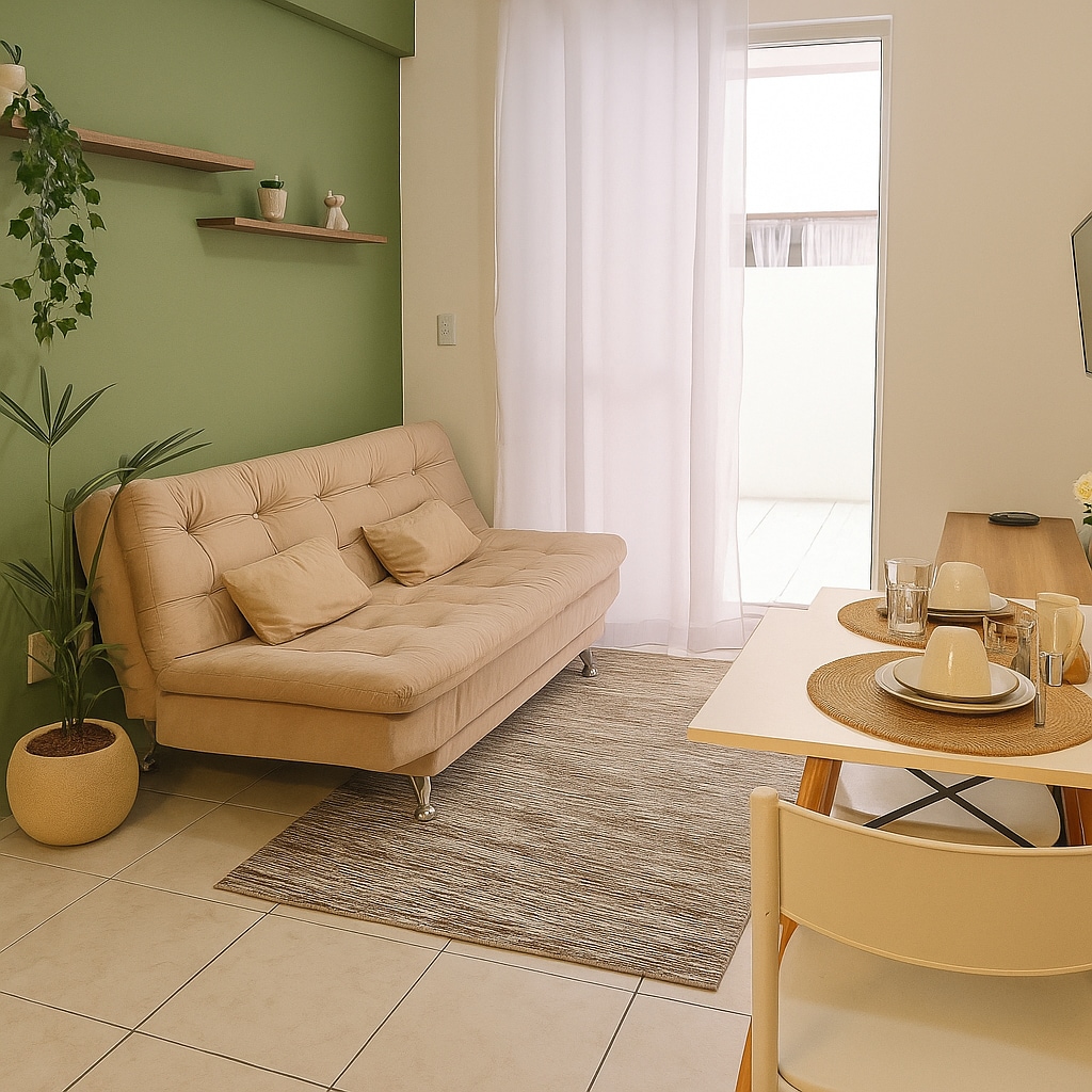 We are a couple who we love to leave cozy and perfect spaces to be a practical and stylish accommodation. In addition to the great location with market and super close pharmacy. ⚠️No parking space⚠️ Apto with a super cozy room with air conditioning, bathroom, living room with kitchen(refrigerator, stove with oven, microwave and cooking utensils) office space with desk and chair. Super airy and very well-lit Apto. Smart TV in the living room, 300mb internet with Wi-Fi.