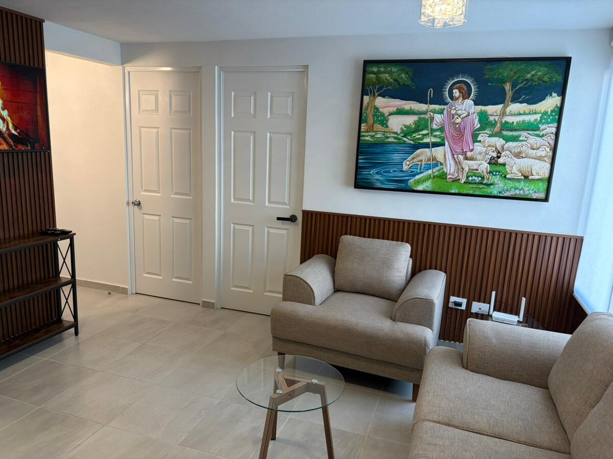 Bright, modern high-rise space on the 18th floor with open city views. Ideal for couples, friends, and relaxed longer stays. 3 Queen beds for up to 6 guests Equipped kitchen Large-capacity washer and dryer machine. Electric blinds and high-speed Wi-Fi for home office. Enjoy a 24/7 GYM, rooftop, and in-building parking for 2 cars. Pet-friendly building with security service and 24/7 security cameras. Quick access to Cholula (5 min away), Angelópolis (8 min away), and key attractions