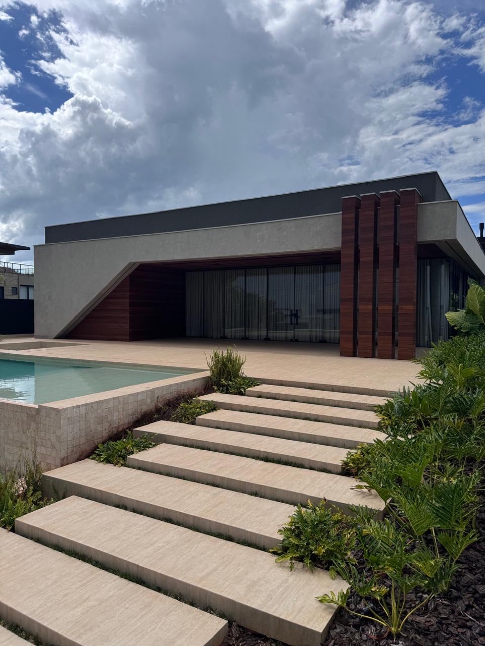 Área de lazer com piscina.