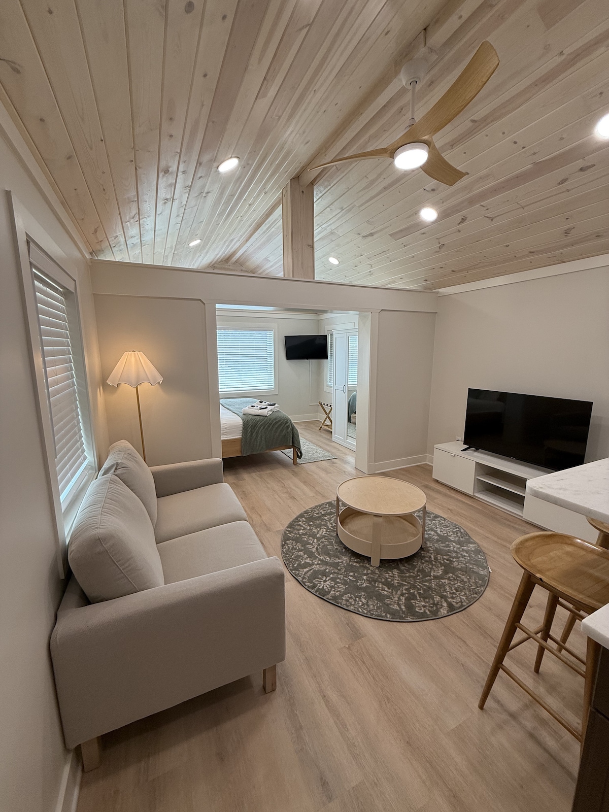 Escape to Florida's best-kept secret, Navarre Beach, just a 5-minute drive from this charming 330 sq. ft. coastal cottage. Perfect for solo travelers or couples, it features airy gabled ceilings, a King-size Murphy bed that converts into a dining/work table, and unforgettable shower experiences!! Conveniently located near restaurants and grocery stores within walking distance, this cozy retreat has everything you need for a relaxing getaway, all just minutes from stunning white sand beaches!!
