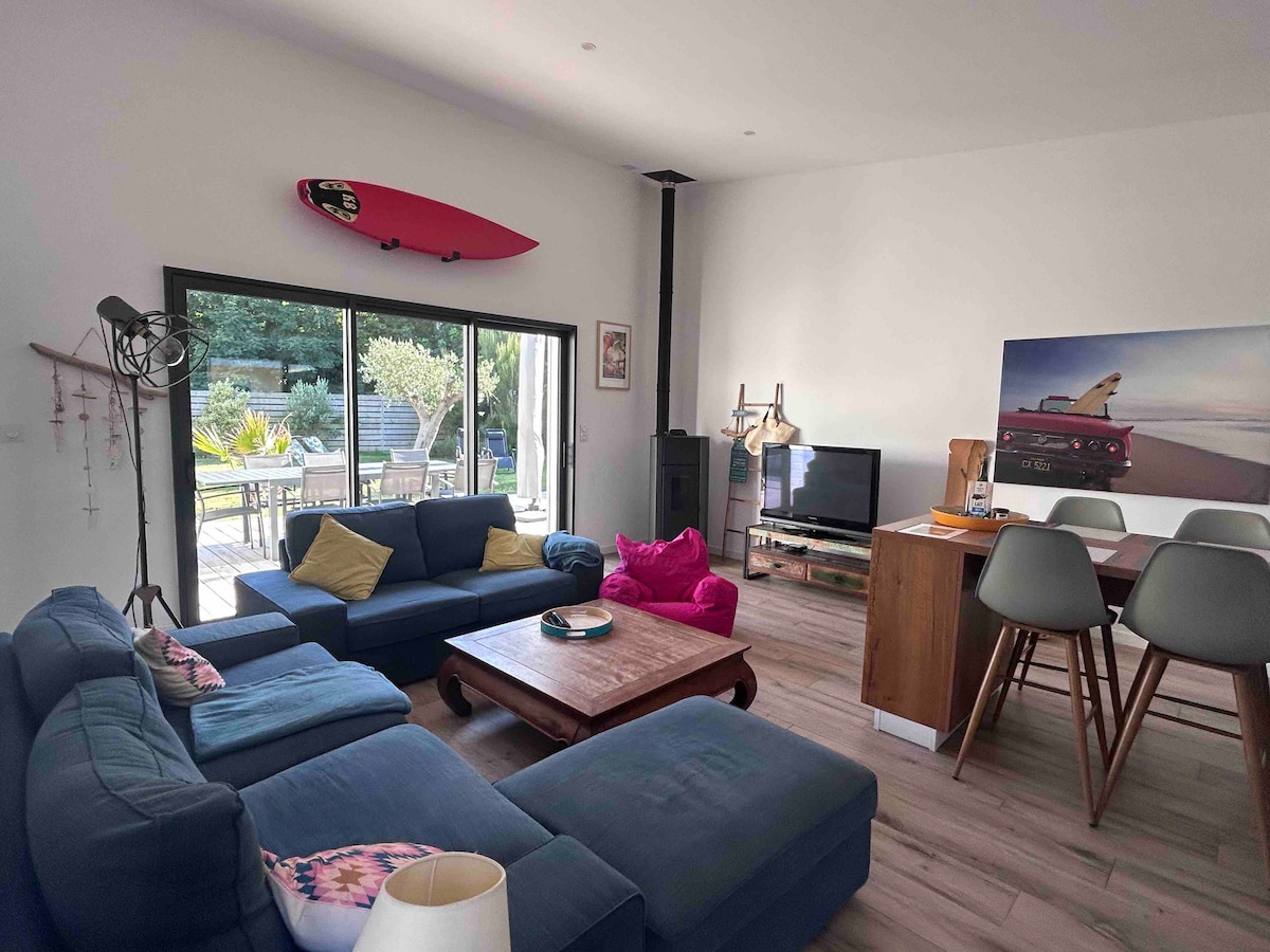 A 50 m de la plage de sable fin du Dossen et de ses activités nautiques, de la forêt domaniale et de l'Ile de Sieck, notre maison en bois, construite en 2019, est le pied à terre idéal de vos vacances. La terrasse de 65 m2 est exposée plein sud avec vue sur la forêt! Plage, surf, kite-surf, balade en forêt...Toutes les activités à pieds à quelques mètres de la maison. Au retour de la plage, vous profiterez de la douche extérieure, du jardin clos, du barbecue et bien sûr du jacuzzi!!
