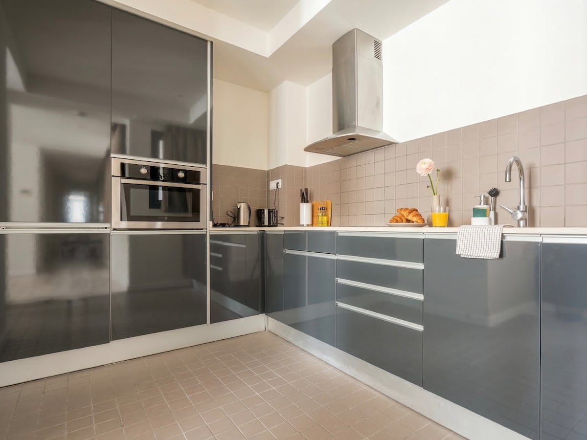 Start the day around the sleek, wooden dining table, then take a newspaper up to the sun-drenched rooftop terrace at this premium, colorful apartment. Cool things down with a refreshing shower in the polished concrete bathroom. More details? High-end Siemens appliances, professional grade internet, Bose speakers, large beds with 300 thread count linens & pillow selection, large wardrobes, safety box, washer, dryer & bike room.