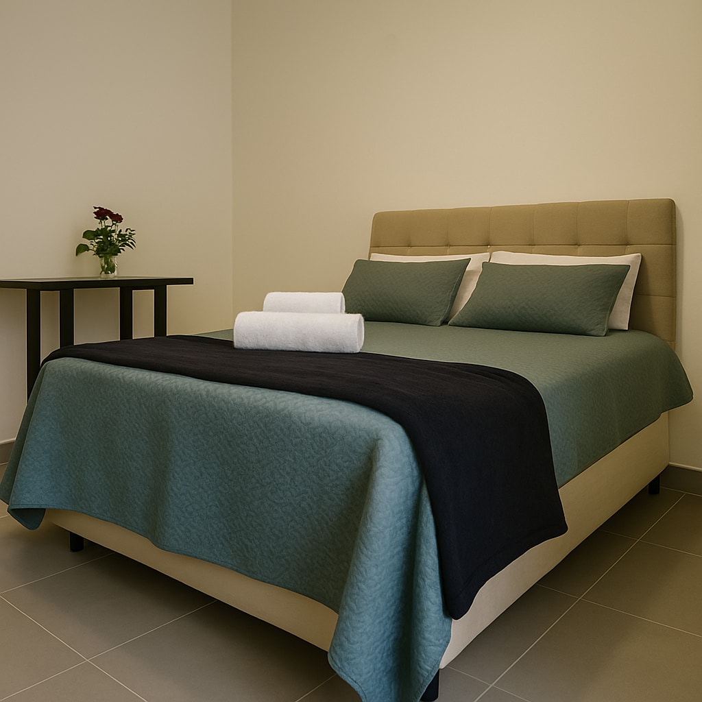 Cozy 40 m2 studio with a view and a privileged location. Balcony with windows and blackout blinds, king bed sofa, 200 stranded soft and smelling sheets, TAIFFY hair dryer,table, chairs and a beautiful view. Equipped kitchen: fridge, electric oven, cooker, microwave, coffeemaker and blender. Cups of sparkling wine, wine, water and beer .Prians, cups, cutlery and a meal countertop. Smart TV, air-conditioning, Wi-fi, parking space and Self check-in😀
