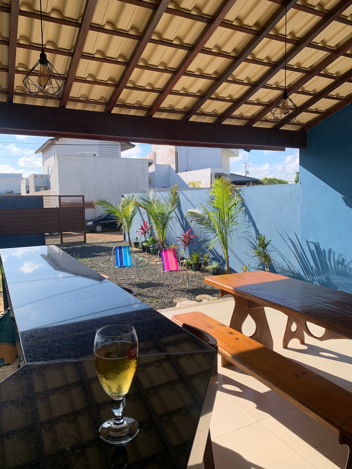 Casa nova de alto padrão, composta por 2 quartos com ar-condicionado, cozinha completa, sala, um banheiro, área de serviço e área gourmet, piscina, chuveirão e garagem para 2 carros. Todos eletrodomésticos novos. Casa conectada com Wi-Fi.