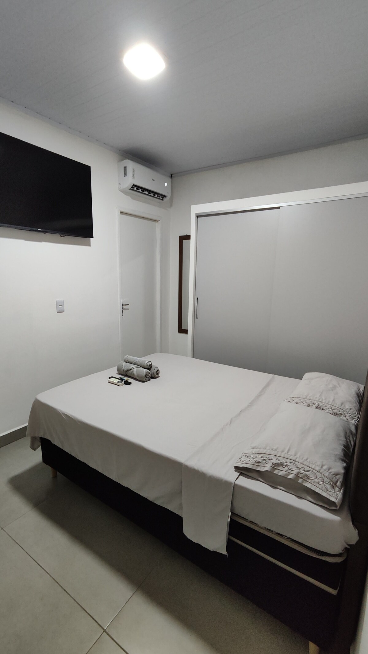 Uma mini casa extremamente aconchegante e confortável, tudo sob medida, pensado em seu conforto, praticidade e privacidade. Completa com tudo o que você precisa para sua estadia. Cama de casal confortável, SmartTV, cozinha completa para que possa fazer suas refeições, ar condicionado splint. Varanda em deck com rede e banco. Área externa com mesa, banco e fogueira. Estacionamento em área fechada não coberta e monitorando por câmera. Seja bem vindo e sinta-se em casa!