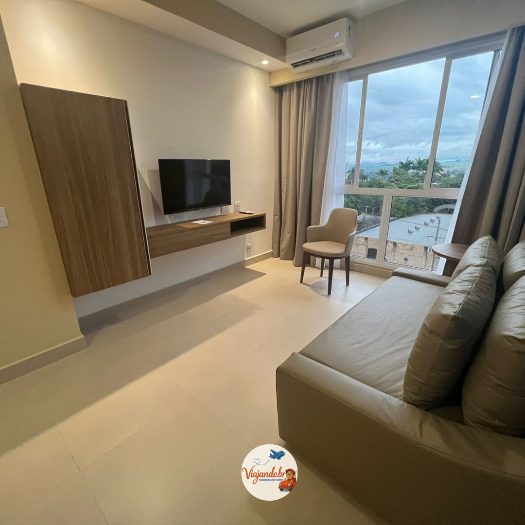 A cozy, comfortable, spacious, bright, well-decorated apartment that inspires tranquility! Everything was thought out in the smallest details to bring the greatest possible comfort to your stay. Air-conditioning in the bedroom, with a queen-size bed. Equipped mini kitchen. Full living room with TV and access to Netflix. Pleasant balcony with a beautiful garden in front of it. The Cond. features a swimming pool, sauna, TV/game room, fitness area and laundry. Excellent location, do everything on foot. We are 10 minutes from the water park.