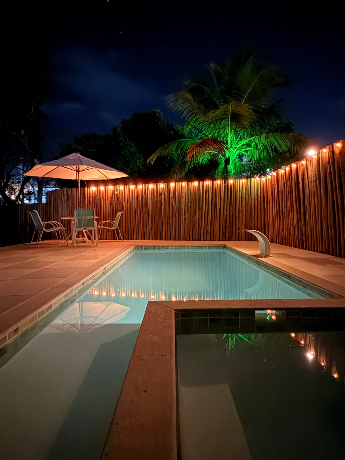 Have a perfect stay listening to the sounds of the waves! Relax in our grassy garden with trees, enjoy our pool overlooking the sea and have special moments in our gourmet area with barbecue facilities and beer tap. Our home has 4 bedrooms, all with air AC, with 3 being en-suite. There is a cozy living room with satellite tv; a games room with darts and snookers and a beautiful kitchen with a balcony boasting stunning views of the ocean. It is excellent for home-office with 420 mz internet.