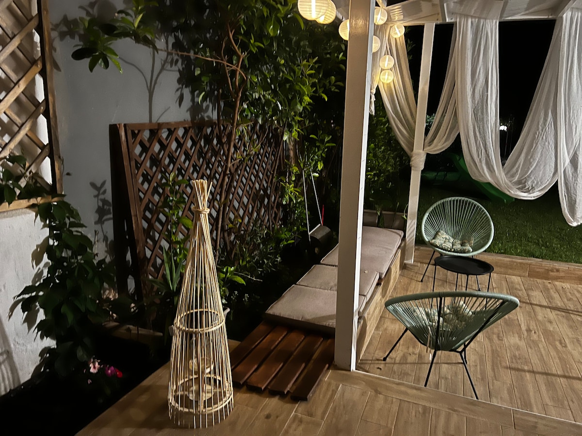 A very cosy house(45sqm) a few minutes away from the beach that is ideal for couples or small families. There is a big, lovely garden and a barbecue as well as all the amenities that you'll need in the house. It is also located in a quiet neighbourhood away from the main street, with free parking in front of the house. Kavala town is 8km away and there's a mini market nearby as well as a few tavernas.
