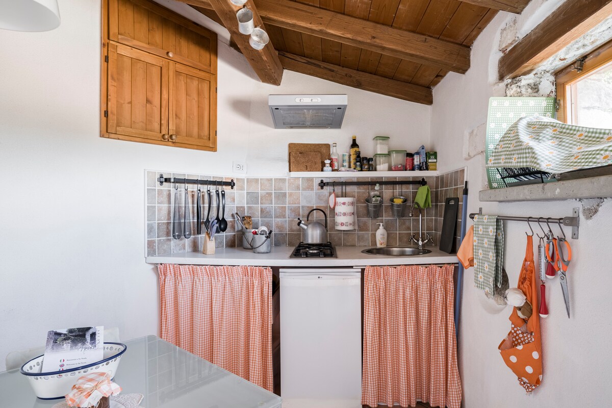 In the center of Northern Sardinia, in the green Anglona, about 1h and 30 from the airports of Olbia and Alghero, 300 m/h and 8 kilometers from the sea, THE VILLAGE IN THE ROCK > SEDINI. A mini apartment, surrounded by greenery, in a typical Sardinian house for those who love nature, tranquility, but also the convenience of being close to a town with unique characteristics. An apartment consisting of a double bedroom (to which another bed can be added), a bathroom, a private kitchen and its own garden.