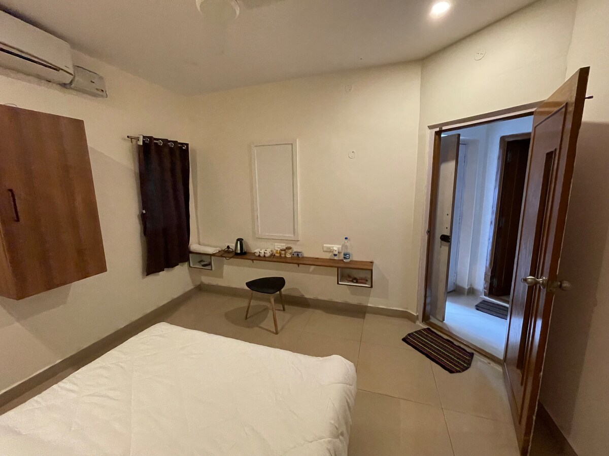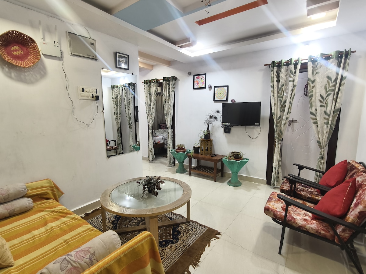 Kick back and relax in this calm, stylish space. Experience a cozy and stylish 1BHK perfect for couples, families, or solo travelers. Enjoy a bright living space, a comfy bedroom, a functional kitchen, and a refreshing terrace area. BBQ🍤, 🔥 camphire , and home-style food 🥘 are available on request. A peaceful, secure stay with 24/7 CCTV surveillance.