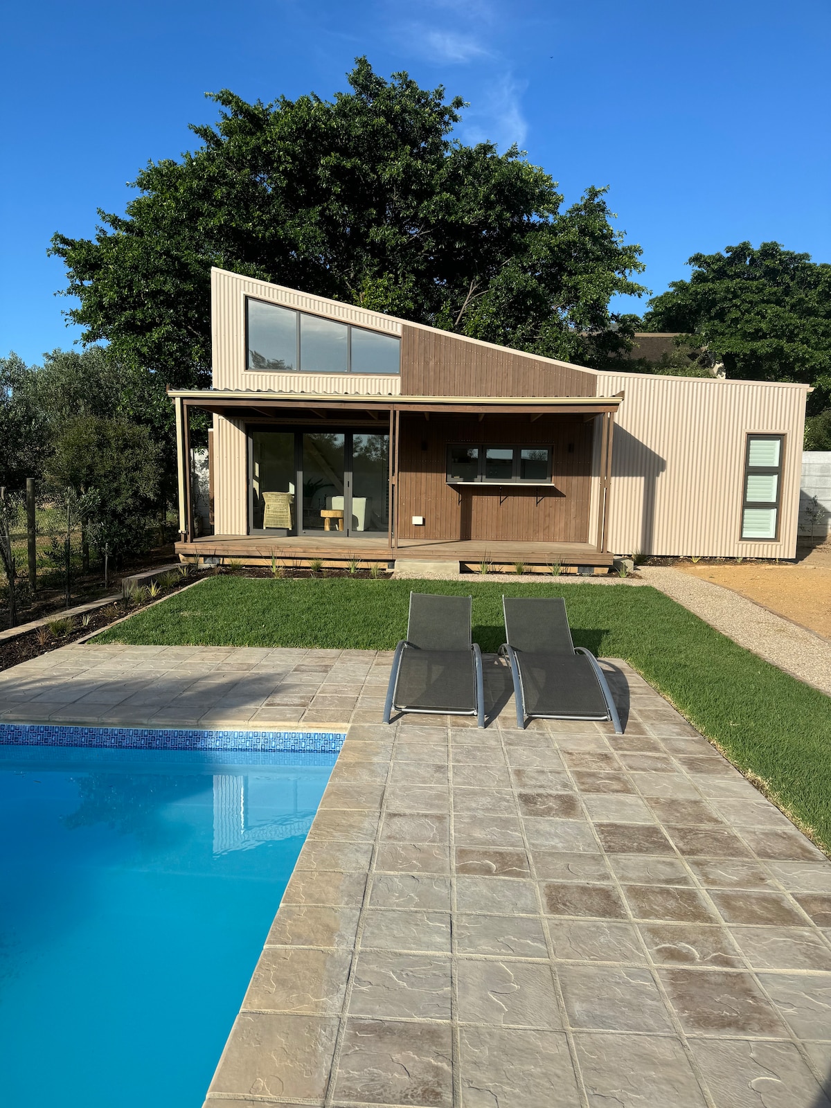 RiverStone Cottage lies at the foot of the majestic Simonsberg mountain with panoramic views in all directions. Whether you are relaxing under vast oaks or at the plunge pool and watching the sunset turn the mountains pink or are an early bird and watching the sun rise behind cheeky, pointed Botmanskop, there are moments aplenty to ooh and aah at the majesty that surrounds this very special place.