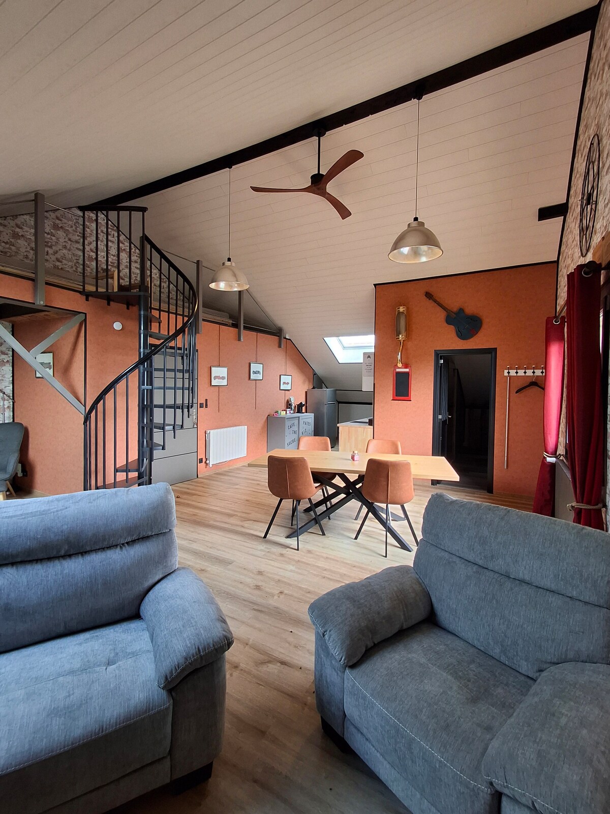La Belle Vache (la BV), very nice loft rental, 90 m2 house, completely independent, adjoining that of the owners in a beautiful natural setting at 1100 m alt. 180° view of the Jura Mountains, in the heart of a mid-mountain area with a strong cultural and heritage identity, the Haut-Jura. It is located on the route of very nice hiking trails, 10 minutes from the best cross-country skiing sites in France. 1 hour from Geneva, 10 minutes from the beach of Lake Lamoura.