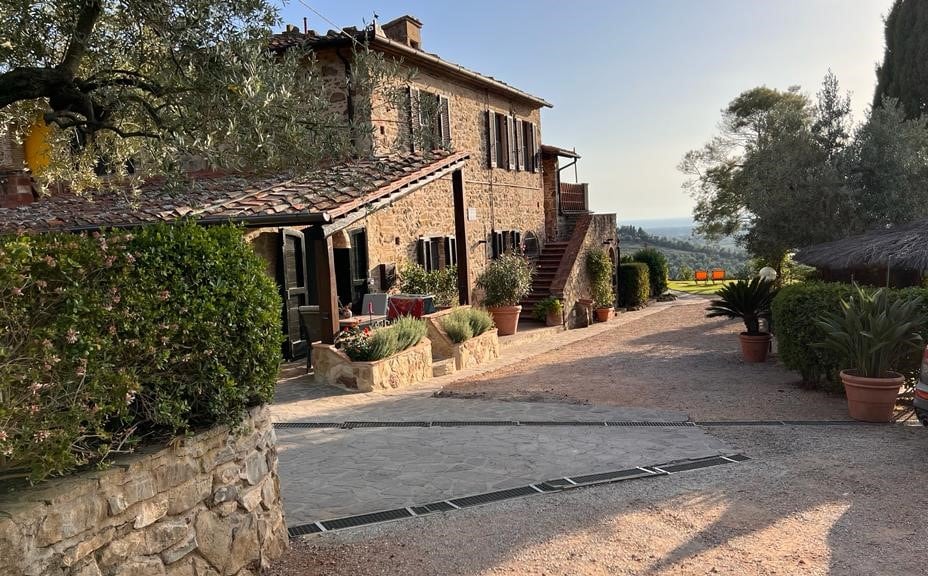 Agriturismo Il Colle is located on one of the Chianti hills. The property has been completely renovated, overlooking the Chianti valleys and enjoying splendid views of the surrounding hills and the city of Florence. The apartment is completely independent, on two internally connected floors, and features a private garden lined with centuries-old oaks and Tuscan cypresses. The restoration maintained the original Tuscan architectural style of rural barns.