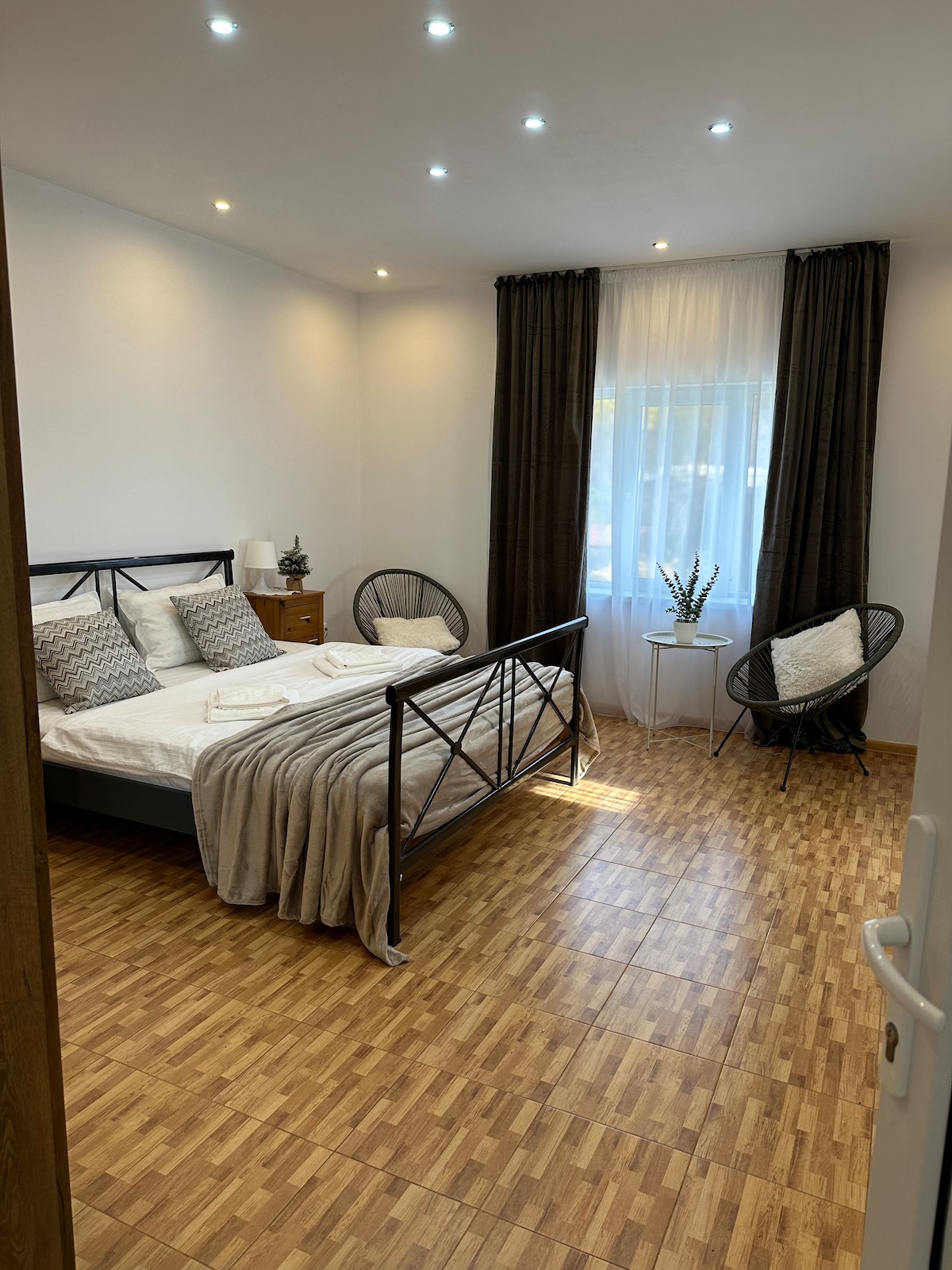 This apartment is located in a quiet ultra-central zone, in the immediate vicinity of the Baia Mare Central Park, having a stunning view. The property has a plenitude of features that make it suitable for all types of guests. The apartment is 70 sqm and has a spacious living room with A/C and 65 inch Smart UHDTV, one bedroom with a king bed with professional mattress, bathroom with walk-in shower, 10sqm balcony, parking and many more.