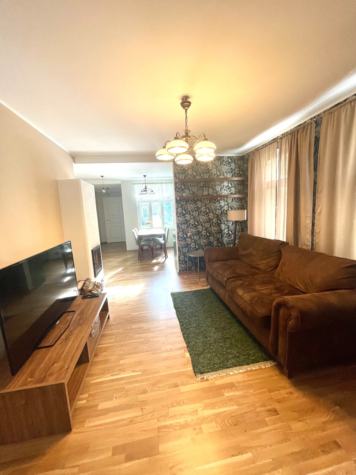 Enjoy your stay in our fully renovated apartment which is just an 8 minute walk from the Freedom Square and Old Town. Free Wifi and free private parking on site. Self check in and out. Our apartment is located in a historic building built in 1889 which is protected by the National Heritage Board. The building and the apartment are fully renovated. It is easy to get around the city center by foot, electric scooters and tram. Cafes, restaurants and grocery stores are close by.