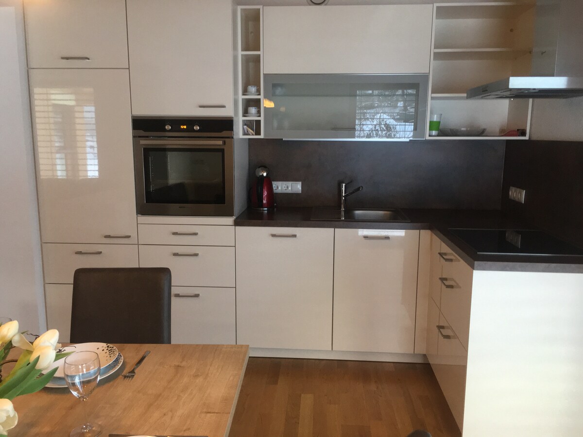 Elegant penthouse apartment in modern alpine style on the Seefelder plateau. The cozy, quiet apartment on the last floor is designed for up to 4 people very comfortably. It has a bright living-dining area with modern fully equipped kitchen, two double bedrooms, two bathrooms, underfloor heating, free Wi-Fi and a very large private terrace. From there you can enjoy the breathtaking view of the mountains and the Inn Valley, both in summer and in winter.