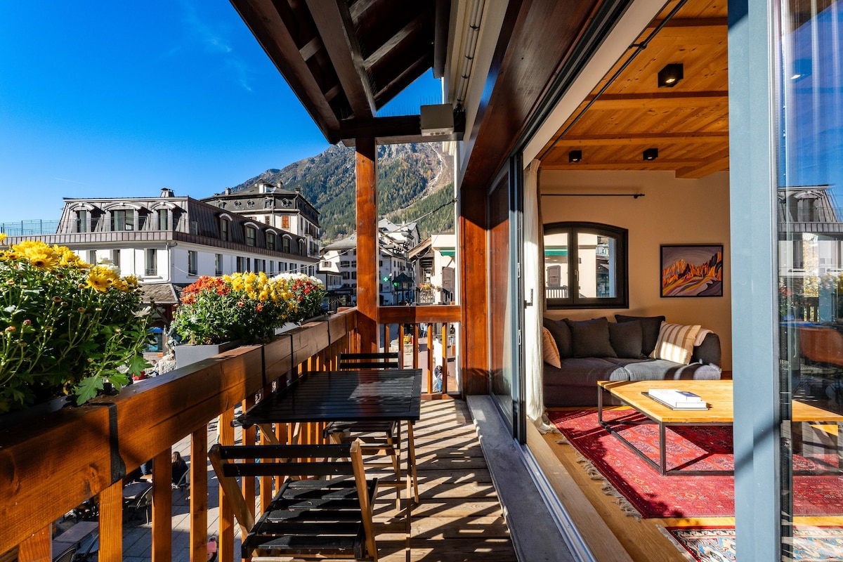 Experience everything that Chamonix has to offer from this unique, luxury one-bedroom apartment nestled right in the heart of the town's pedestrian centre. The property features two balconies with unparalleled views of Mont Blanc, a private entrance, and a cellar for ski equipment. Perfect for singles or couples; pullout couch or bed nook can accommodate a third guest. Tourist cards provided to guests, which give discounts on transport. **Officially classed as four-star tourist accommodation**