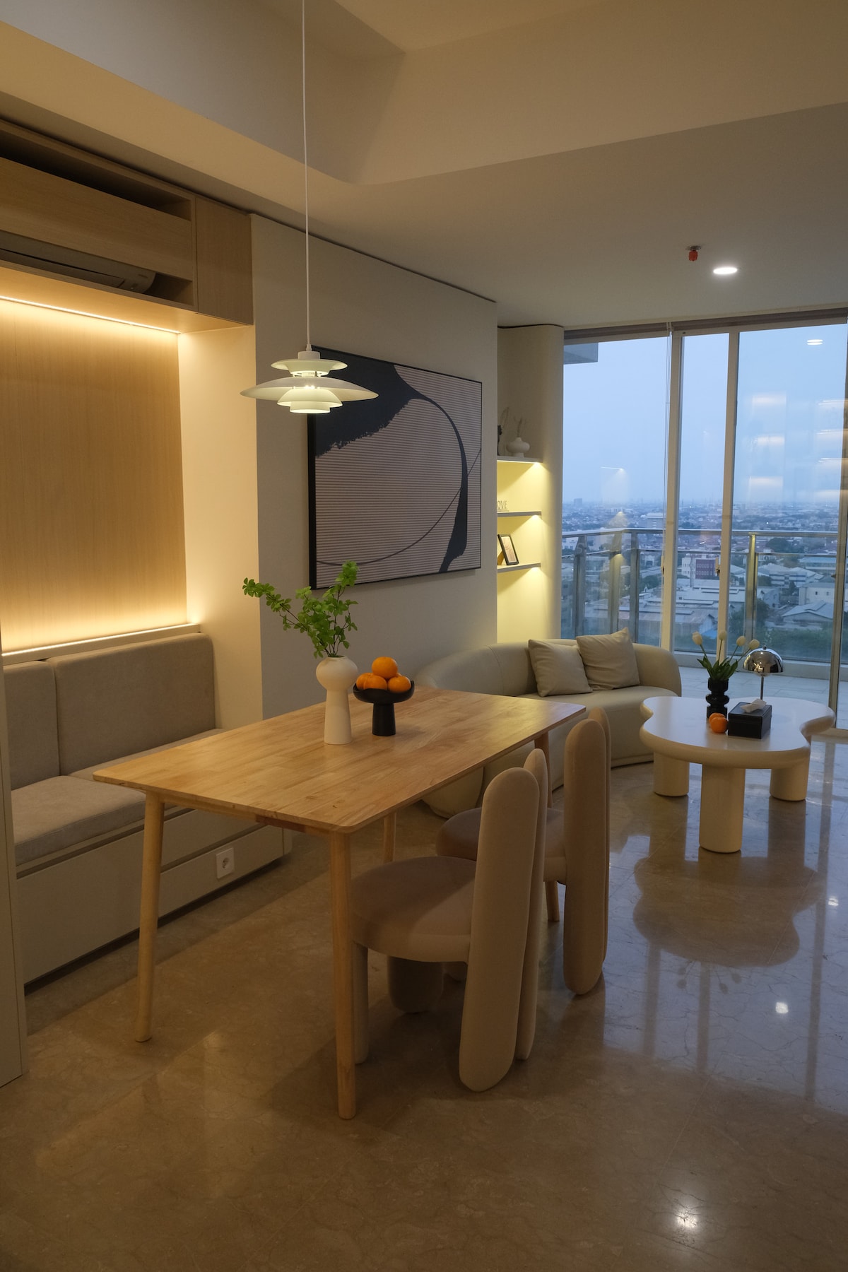 Enjoy a stylish experience at this centrally-located place. Menteng Park Apartment by KAVA STAY Emerald Apartment Building 2 Bedroom 1 Bathroom + Water Heater Luxury Pool Indoor Kids Playground Full Wifi Smart TV with Netflix Modern Japandi Interior Design Kitchen Set for 4 person Kitchen basic Utensils 2 Doors Fridge Microwave Hot and Cold Water Dispenser Toiletries Paid Parking Option (4k/hour)