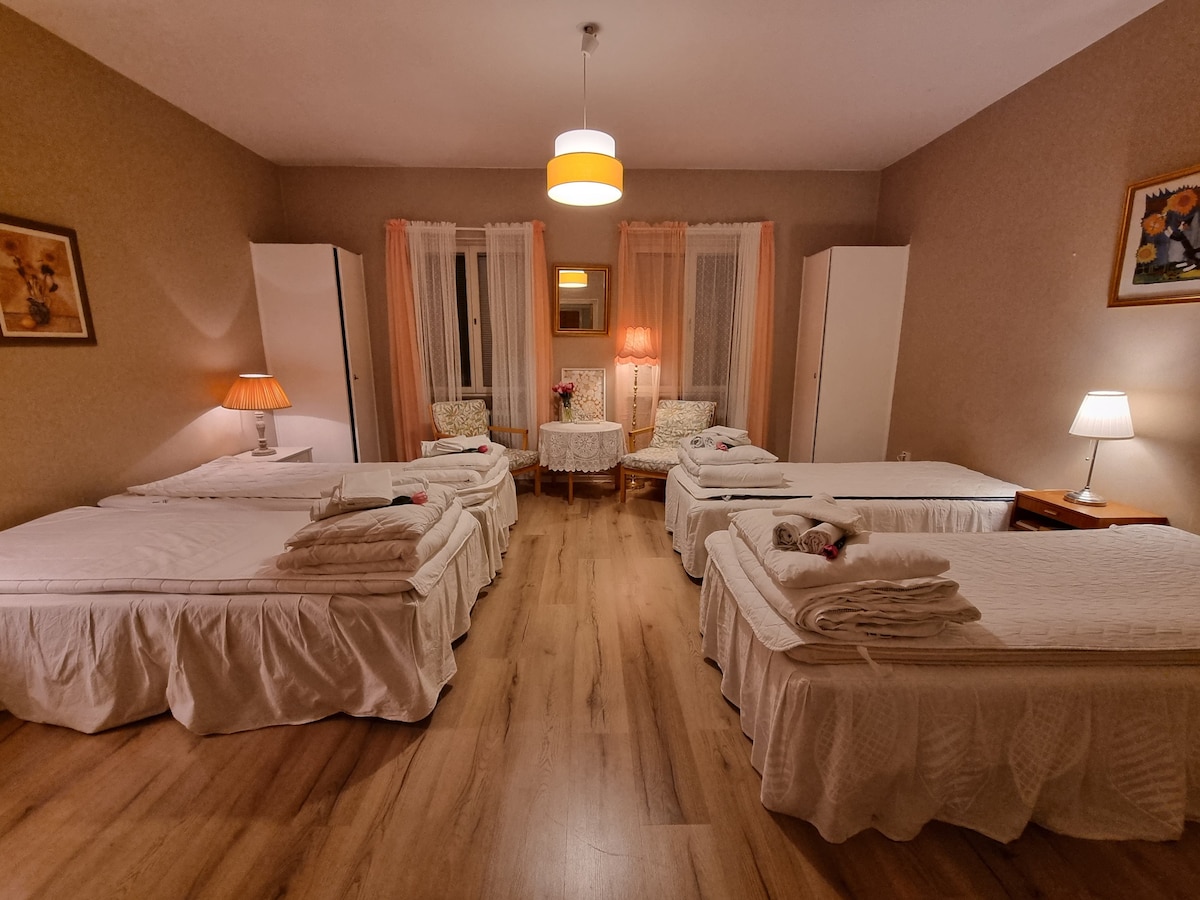 Fresh air and nature around, birds singing and forest paths inviting you for a walk. You won’t want to leave this charming, lovely place. Cozy private room with access to a lovely large common room with fireplace and sauna (with extra fee). The common room has also a micro-oven, fridge and a water kettle. The private room has a sofa bed that turns into a double bed.