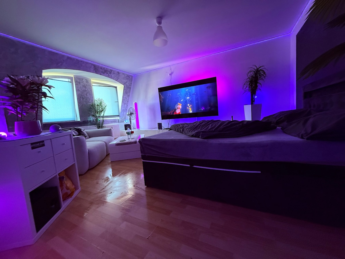 Unser Tiny-Apartment ist alles andere als gewöhnlich. Aus einem zwölf Quadratmeter großen Raum haben wir ein vollausgestattetes romantisches Feriendomizil geschaffen. Mit direktem Zugang zum Garten ist unsere Ferienwohnung eine grüne Oase inmitten der Stadt.
