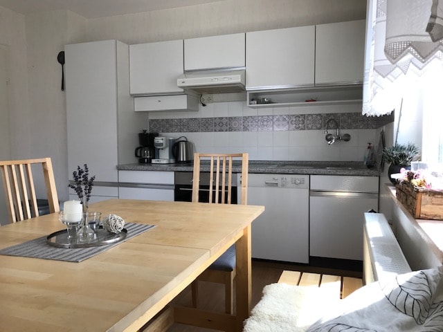 A very cozy vacation apartment awaits you in a historic half-timbered house. The apartment is fully equipped, has a high-quality fitted kitchen with microwave, dishwasher and spacious refrigerator with freezer drawers. In the bathroom there is a bathtub with shower. There is a double bed in the bedroom, another one upstairs in the gallery and two single beds. The apartment includes a parking space right outside the front door. Look forward to a nice time out