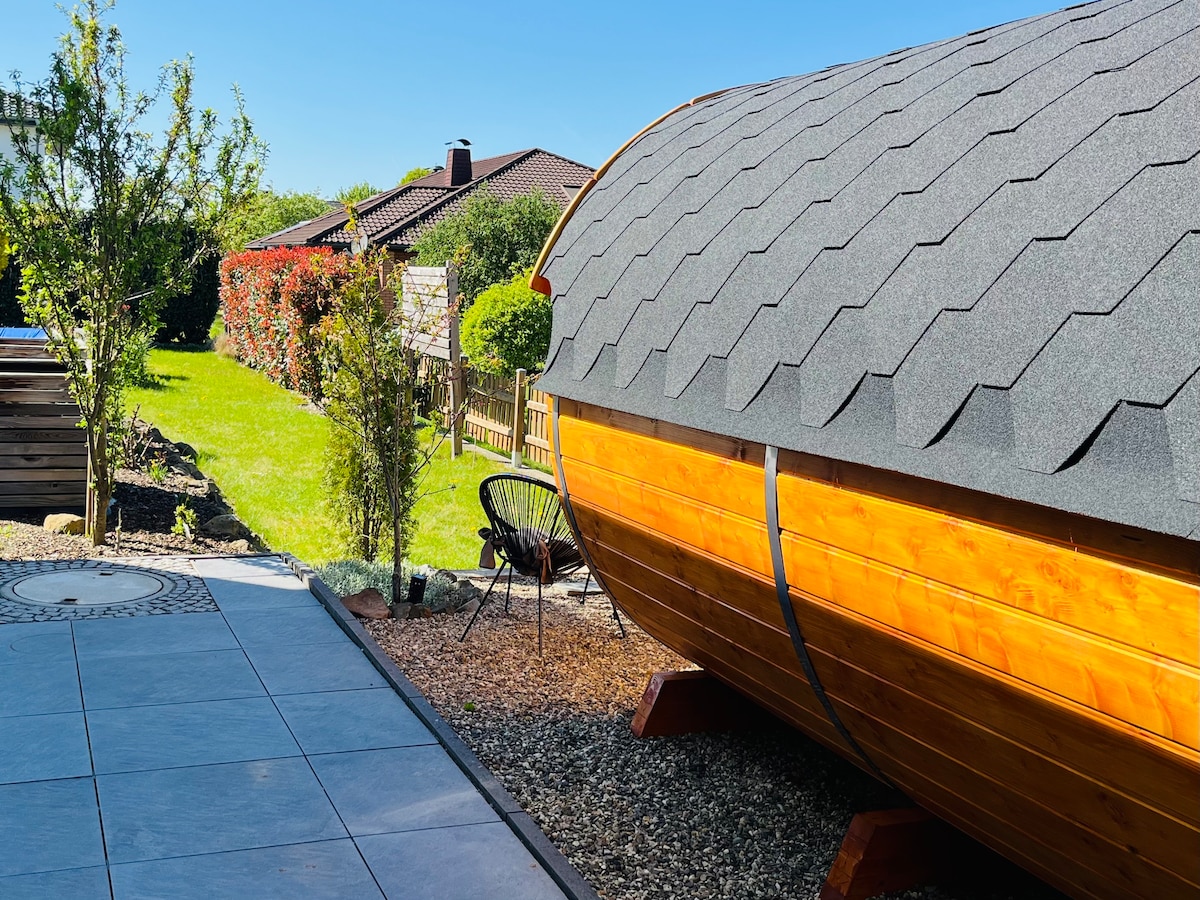 Herzlich Willkommen in dieser geräumigen, gemütlichen Unterkunft. Ob Familie mit Hund (bis 15 kg), zu zweit od. alleine: komm in diese tolle, helle Wohnung mit viel Platz für alle. Entspanne dich im stilvollen Naturstein-Bad und genieße den Garten mit Teich und Grillplatz. Auf 68 qm bietet die Wohnung alles, was du zum Abschalten benötigst. Bei Fragen und Wünschen stehe ich zur Verfügung, bin vor Ort und wohne mit meinenen Hunden eine Etage tiefer.