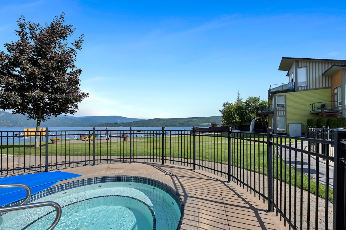 Mid term rentals in off season! Contact for details. This Private Home Oasis awaits you in the beautiful Shuswap. Stylish design, open concept for a comfortable stay, loads of natural light. Sunsets with lake, mountain & city views off the front. Sunrise on Private back deck. 5 min to the beach, downtown Wharf and more. Tiki Bar to visit by the pool. Beaches, trails, wineries, pubs, restaurants, downtown Shopping. Easy Hwy access. Pool open for summer season. Hot tub always open!